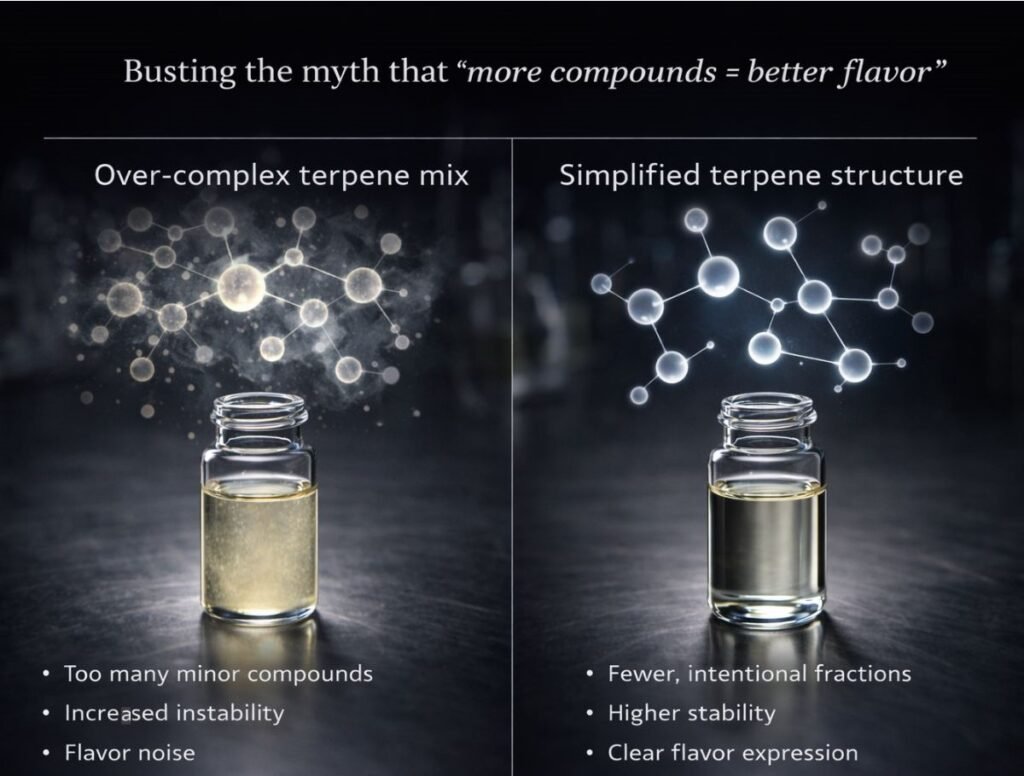 Many brands find that simplifying vape terpene systems improves smoothness and reduces harshness without sacrificing character.